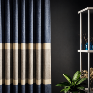 Lacivert-Krem Fon Perde S Pile Hazır Dikilmiş Anında Teslim